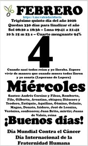 Efemérides Hoy 4 de Febrero, DÍA MUNDIAL CONTRA EL CÁNCER
