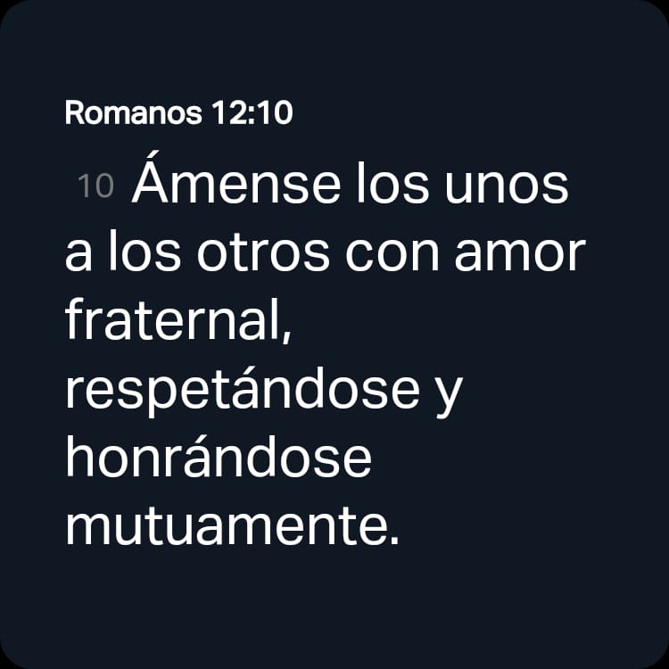 Romanos 12:10 NVI [10] Ámense los unos a los otros con amor fraternal, respetándose y honrándose mutuamente. https://bible.com/bible/128/rom.12.10.NVI