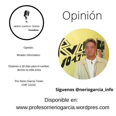 Mirador Informativo, Estamos a 30 días para el cambio, demos la milla extra Por Nerio García Terán.