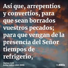 19 Así que, arrepentíos y convertíos, para que sean borrados vuestros pecados; para que vengan de la presencia del Señor tiempos de refrigerio.