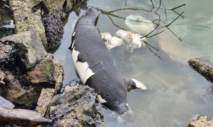 Se trata del cadáver de un manatí en fase de lactancia, una especie Trichechus manatus, según informó Ecoaventura.