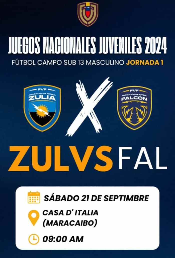 La selección del estado Falcón visita al estado Zulia desde las 9 de la mañana, en la cancha de la Casa de Italia del Estado Zulia.
