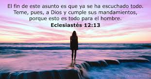 Eclesiastés 12:13. Reina-Valera 1960 … El fin de todo el discurso oído es este: Teme a Dios, y guarda sus mandamientos; porque esto es el todo del hombre.
