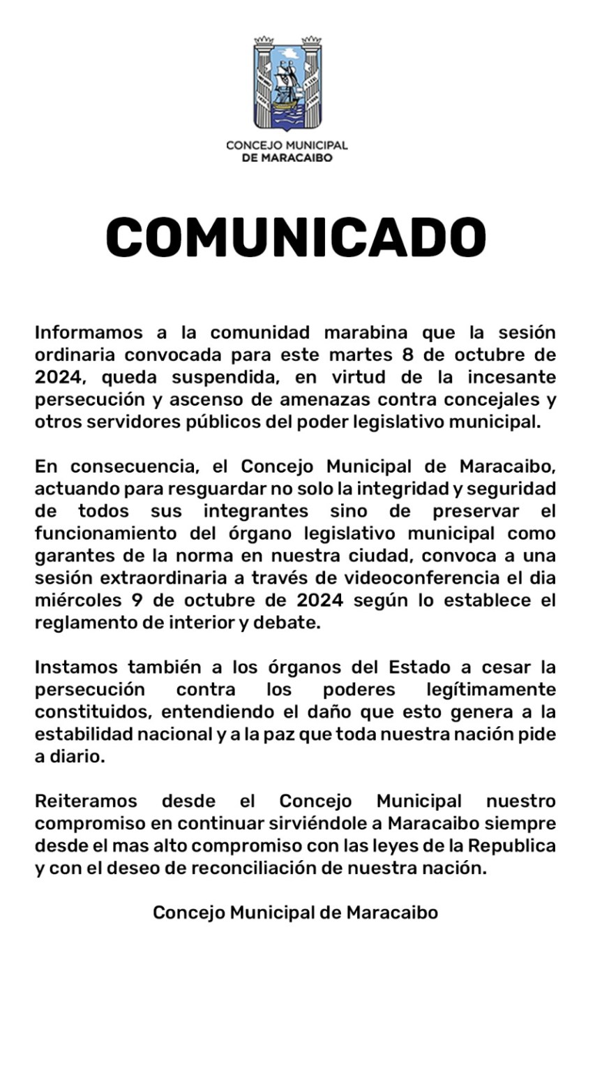 Suspenden la sesión ordinaria del Concejo Municipal de Maracaibo