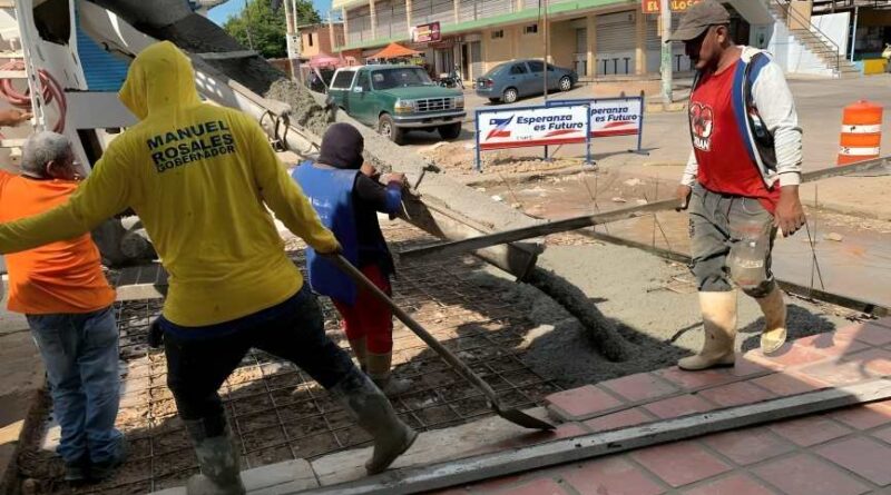 Las obras en curso incluyen la construcción de paños de concreto para reemplazar el pavimento deteriorado que había estado causando problemas significativos a los transeúntes.