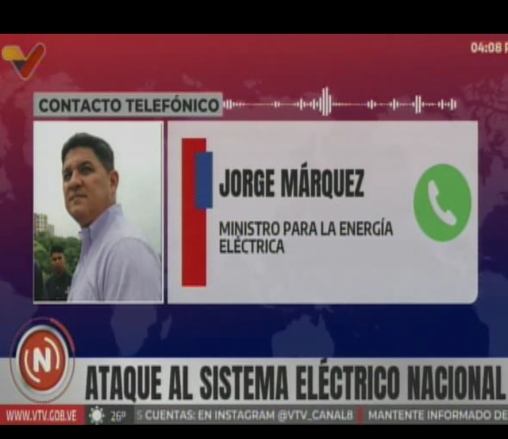 Ministro para la Energía Eléctrica, Jorge Márquez, informó que el reciente sabotaje eléctrico afectó al 25% del país.