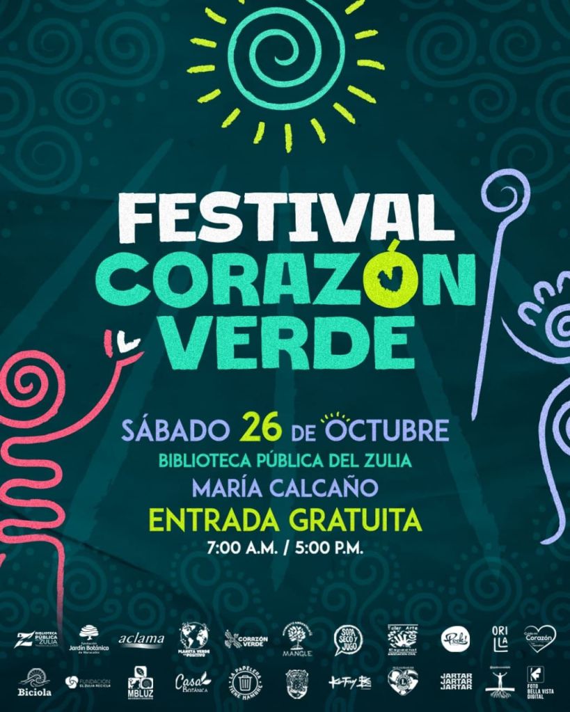 La primera edición del festival ecológico-cultural Corazón Verde abre sus puertas este 26 de octubre en la Biblioteca Pública del Zulia “María Calcaño”, ubicada en la avenida El Milagro. Este evento, organizado por la sociedad civil, es de entrada gratuita y está abierto a todo público para disfrutar de un día lleno de actividades emocionantes y educativas.