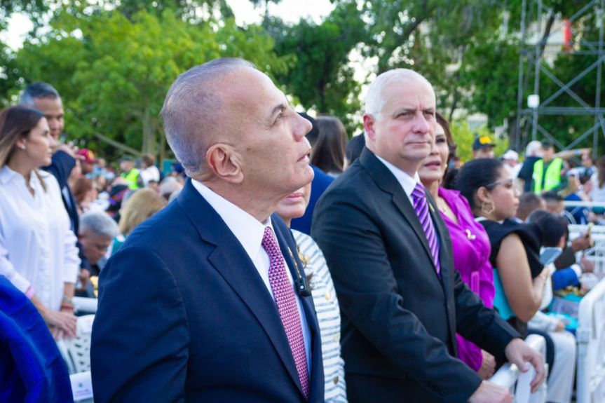 Durante la Eucaristía y la tradicional Bajada de la Virgen, el Gobernador del Zulia estuvo acompañado por la Primera Dama, Eveling de Rosales y miembros del Gabinete de Gobierno.