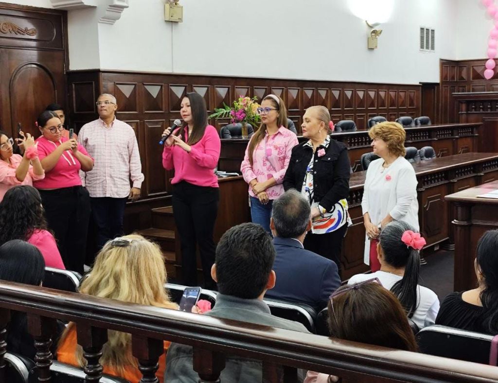 Además, la directora general del parlamento y sobreviviente de este tipo de cáncer Liliam Núñez, visiblemente emocionada expresó: «Con mucho orgullo lo digo soy sobreviviente de cáncer de mama, solo la fe me ayudó a superar esta situación que a Dios gracias pude detectar a tiempo con mi autoexamen donde detecté la anomalía, por eso las invito a tocarse frecuentemente y a ser piezas fundamentales en esta campaña contra en cáncer de mama».