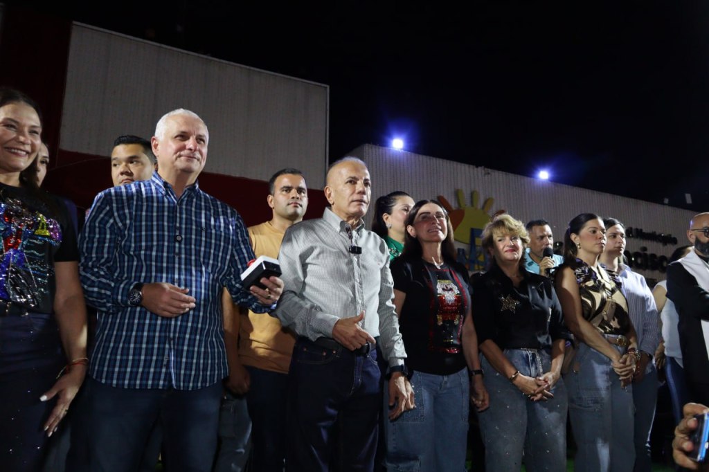 «Hermosa noche, hermosa ciudad y hermoso momento en San Francisco, le pido a Dios que derrame una lluvia de bendiciones para todos ustedes, hoy contamos con la presencia de nuestro gobernador Manuel Rosales Guerrero, a quien le agradezco todas las gestiones para nuestro municipio, este encendido es el punto de partida para el reencuentro de todo el pueblo», resaltó Gustavo Fernández en su intervención acompañado del Gobernador del Zulia, Manuel Rosales, la Primera Dama, Franciela Núñez de Fernández y demás autoridades municipales y regionales.