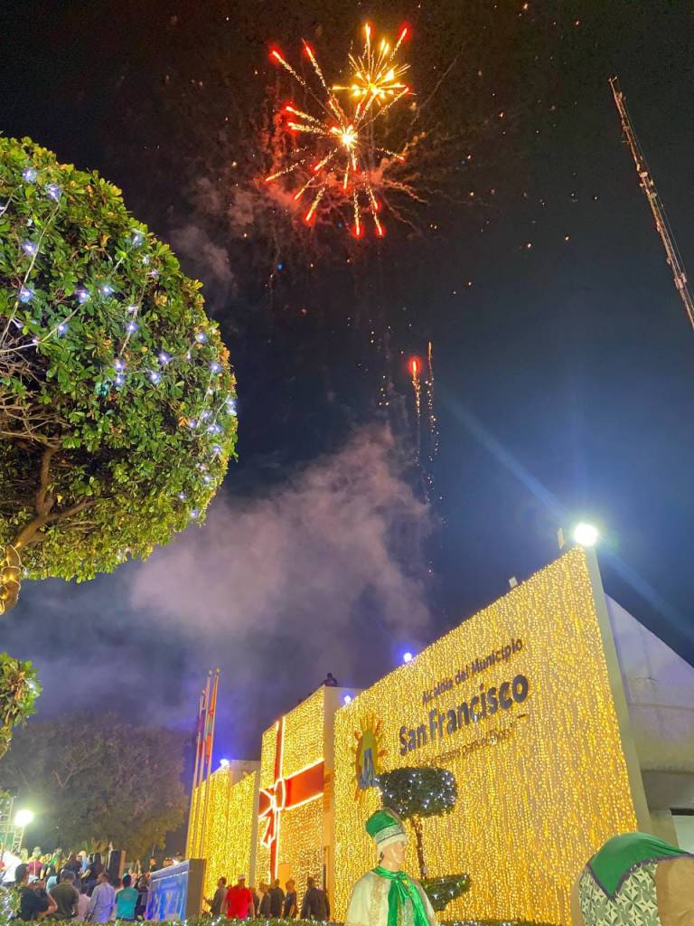 (San Francisco 3.11.24)-. La noche de este sábado se iluminó con fuegos artificiales en la sede del ayuntamiento sureño una vez encendido el Pesebre que, por tradición, es recreado en la Alcaldía de San Francisco, durante la gestión del titular municipal, Gustavo Fernández.