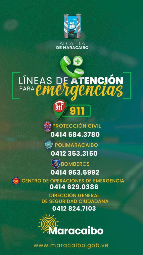 Romero recordó a la colectividad los números de emergencia a los que pueden reportar cualquier situación ante las lluvias; Bomberos 04129635992, Protección Civil 04126843780, Polimaracaibo 04123533150, Centro de Operaciones de Emergencia 04146290386 y la Dirección General de Seguridad Ciudadana 04128247103.