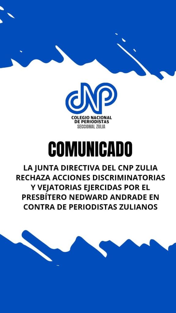 LA JUNTA DIRECTIVA DEL CNP ZULIA RECHAZA ACCIONES DISCRIMINATORIAS Y VEJATORIAS EJERCIDAS POR EL PRESBÍTERO NEDWARD ANDRADE EN CONTRA DE PERIODISTAS ZULIANOS