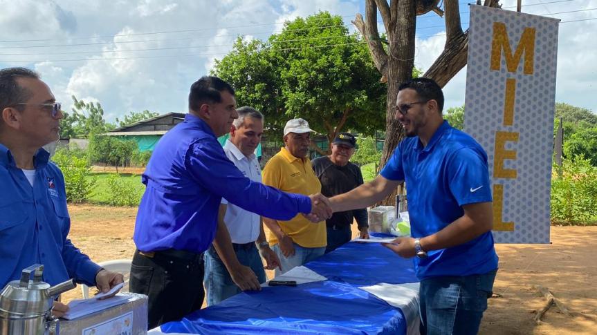 Los beneficiarios recibieron distintos aportes por medio del proyecto “Fortalecimiento a la Producción Apicola en el estado Zulia”, entre ellos: recursos económicos para la adquisición de colmenas, pie de cría F1, equipo de trabajo para la recogida de la miel, equipo de protección personal, además de capacitación y asistencia técnica. De esta manera, se espera una producción de 7.200,00 kilogramos de miel al año.