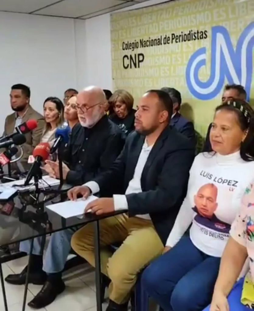 El presidente del CNP, Tinedo Guía, ofreció junto a familiares y abogados de los comunicadores y trabajadores de la prensa detenidos, una rueda de prensa