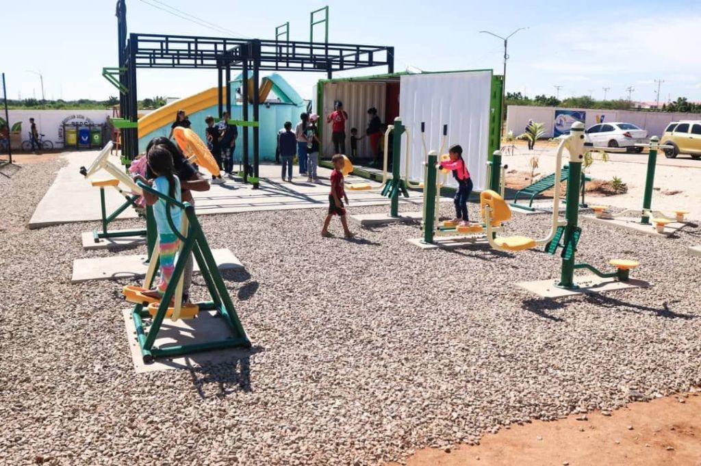 (Prensa ICLAM/Maracaibo 17.01.2025) El Presidente Constitucional Nicolás Maduro Moros continúa ejecutando políticas ecosocialistas y de atención social en beneficio del pueblo zuliano. En tal sentido este viernes 17 de enero fue inaugurado en la ciudad de Maracaibo el Primer Ecoparque denominado «Superando la Barrera en el Zulia Comunal», en el cual se reutilizaron 30 mil cauchos o neumáticos para la construcción de canchas, pisos, pesas entre otros instrumentos deportivos que utilizarán las personas que visiten el espacio para la recreación y el entretenimiento.
