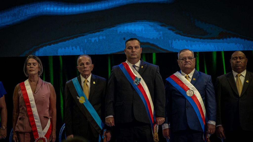 *Maracaibo; 20 de enero de 2025.-* «Estamos en defensa constante de nuestra ciudad”, señaló Adrián Romero Martínez, alcalde encargado de Maracaibo, durante la sesión solemne en honor a San Sebastián realizada este lunes 20 de enero del 2025, en el Teatro Baralt. Sus palabras fueron orientadas a la esperanza, al acompañamiento de los marabinos, a los logros obtenidos durante sus 100 días de labores y al futuro de la ciudad, en un acto donde se honró la vida y las acciones de 13 personas e instituciones destacadas de Maracaibo.