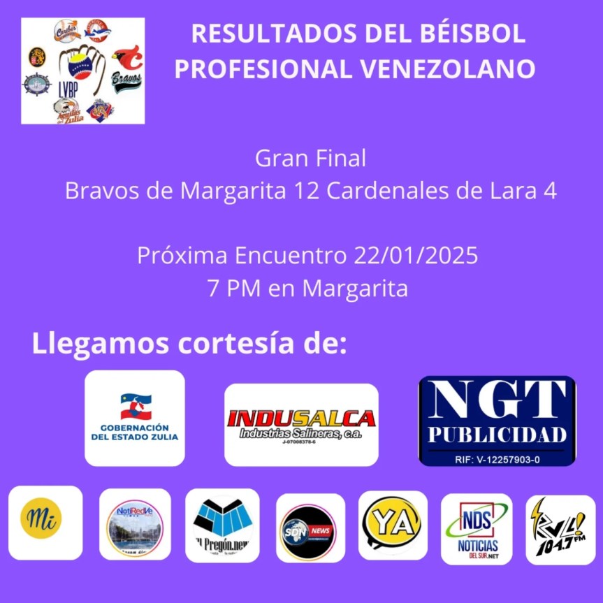 Con alta calificación Bravos de Margarita superó la prueba en el nido de Cardenales de Lara, tras imponerse en el segundo de la Gran Final, 12 rayitas por 4, completando la barrida en Barquisimeto. Este miércoles se reanuda la acción en el Fortín de Guatamare, con la serie a favor 2-0.