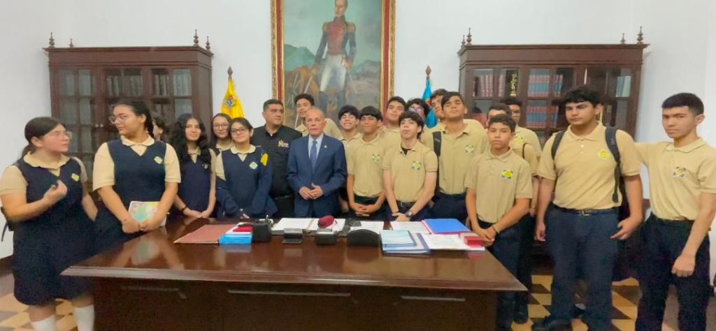 Sesenta alumnos de 5to año de bachillerato del Colegio Salto Ángel realizaron una visita guiada al Palacio de la Gobernación del estado Zulia, la mañana del viernes 24 de enero de 2025.