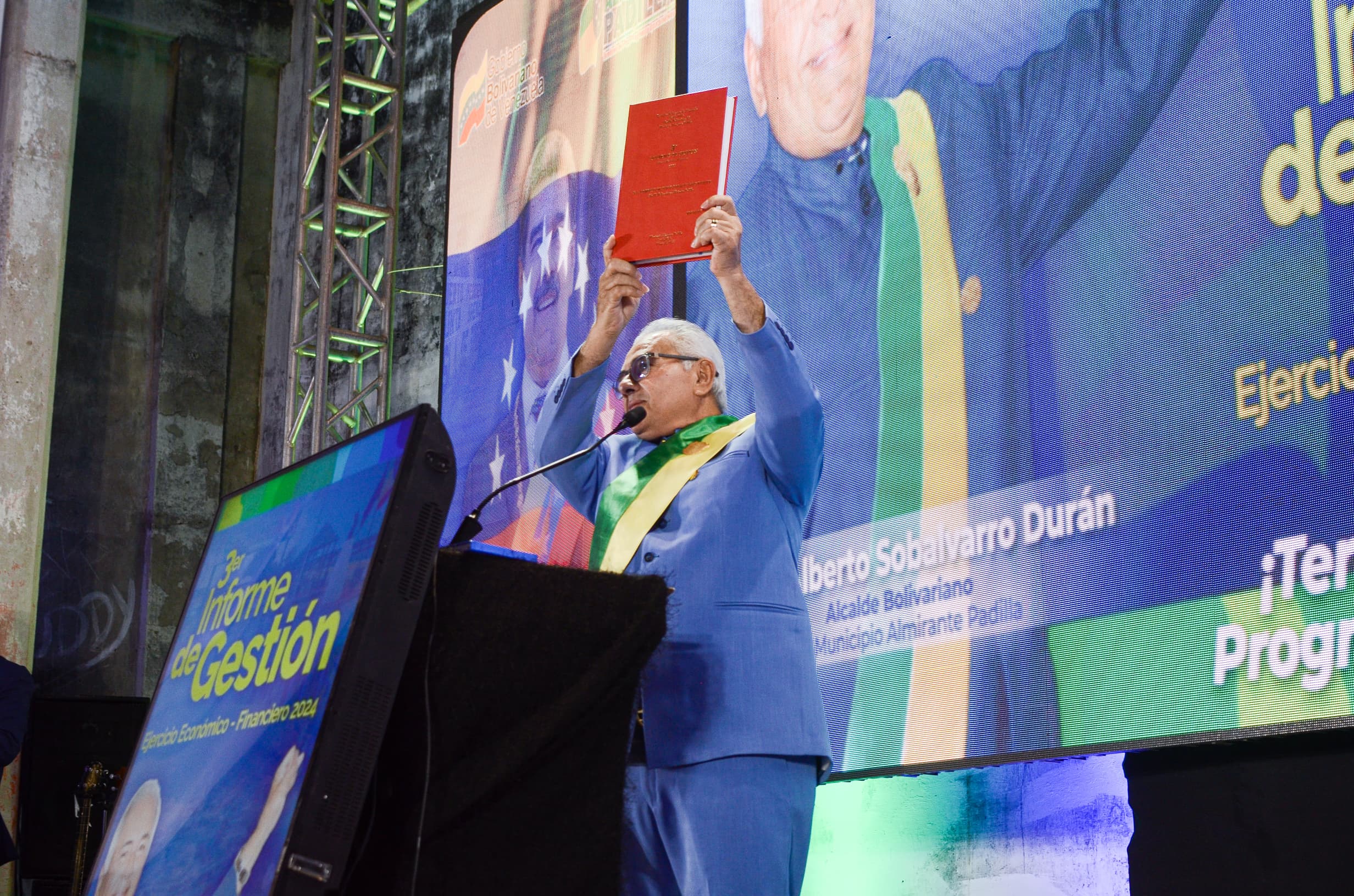 Alcalde Bolivariano Alberto Sobalvarro Duran presentó su tercer informe de gestión. Periodo de transparencia, legalidad y compromiso. El Alcalde Bolivariano del municipio Almirante Padilla del estado Zulia, Economista Alberto Sobalvarro Duran, presentó el tercer informe de gestión ejercicio económico-financiero, desde el antiguo cine “Imperio” ubicado en Isla de Toas, acompañado de su mamá, esposa, hijos, … Continuar leyendo Alcalde Bolivariano Alberto Sobalvarro Duran presentó su tercer informe de gestión.