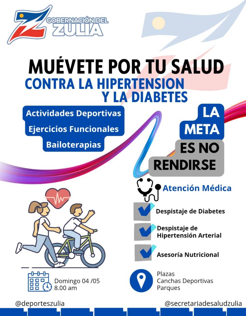 Este domingo 4 de mayo la Gobernación del Zulia a través de la Secretaría de Deportes, Secretaría de Salud y Secretaría de Promoción y Prevención Ciudadana se unen para llevar a cabo la Mega Actividad: «Muévete por tu Salud «.