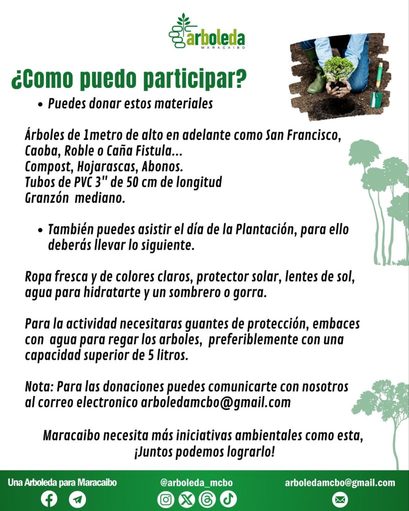 La Asociación una Arboleda para Maracaibo, invita a la comunidad Marabina a celebrar el Día del Árbol, con una jornada de arborizacion