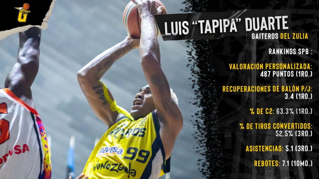 Luis Duarte fue el referente indiscutible del equipo, cosa que no es irrelevante si se considera que los Comecandela pasaron varios años sin contar con una pieza criolla que se convirtiera en su jugador franquicia. “Tapipa” registra la mejor Valoración Personalizada de la SPB con 487 puntos, es líder de la liga en recuperaciones de balón (3.4) y porcentaje de C2 convertidos (63.3%), es tercero en porcentaje de Tiros Convertidos (52.5%) y asistencias (5.1) y décimo mejor reboteador (7.1). Todos estos números lo colocan como el principal candidato para obtener el galardón de MVP de la fase regular.