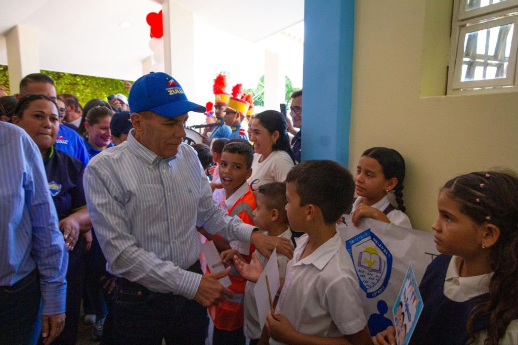 Manifestó el Gobernador del Zulia que esta es una nueva escuela que sale de los escombros, la destrucción y del abandono en la que se encontraba. «Las que no estaban destruidas, las habían cerrado. No sé salvó nada: ni hospitales, Centros Clínicos o servicios. Encontramos al Zulia en las peores condiciones. Y está escuela, que habíamos inaugurado en nuestra gestión anterior, ahora está mejor. Hermosa, más amplia e incorporada al mundo moderno, con sistemas tecnológicos y un laboratorio de computación con equipos de los más rápidos. Aquí también se unen los ejes de educación de avanzada, deporte, cultura, tecnología, ambiente y Palabras Mágicas».
