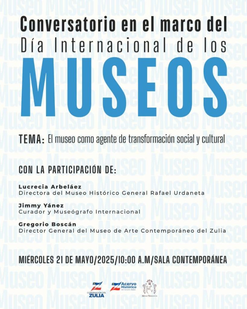 El Museo Histórico General Rafael Urdaneta, en el marco de la celebración del Día Internacional de los Museos, se complace en invitar cordialmente al público al conversatorio: «El museo como agente de transformación social y cultural».