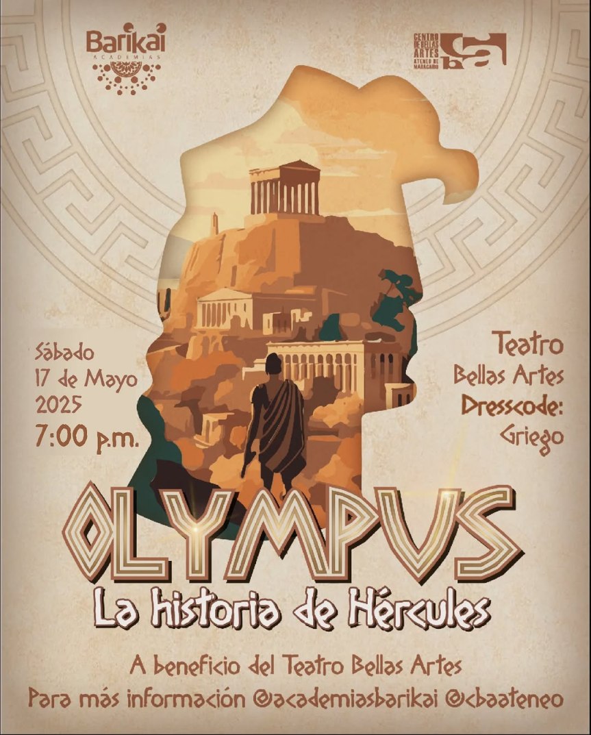 Esta adaptación, inspirada en la versión animada de Hércules, es llevada a las tablas por el profesor Carlos De Oliveira, protagonizada por los integrantes del Elenco Estable del Centro de Bellas Artes Barikai, así como del Programa de Formación Actoral Barikai, con la participación especial de los miembros del Programa Académico en Artes Escénicas y Coaching Actoral, el Elenco Barikai-Claret e invitados especiales.