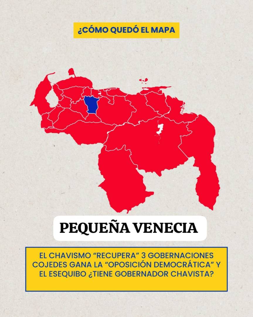 Así queda dibujado el mapa de la República Bolivariana de Venezuela tras los resultados electorales a las gobernaciones: