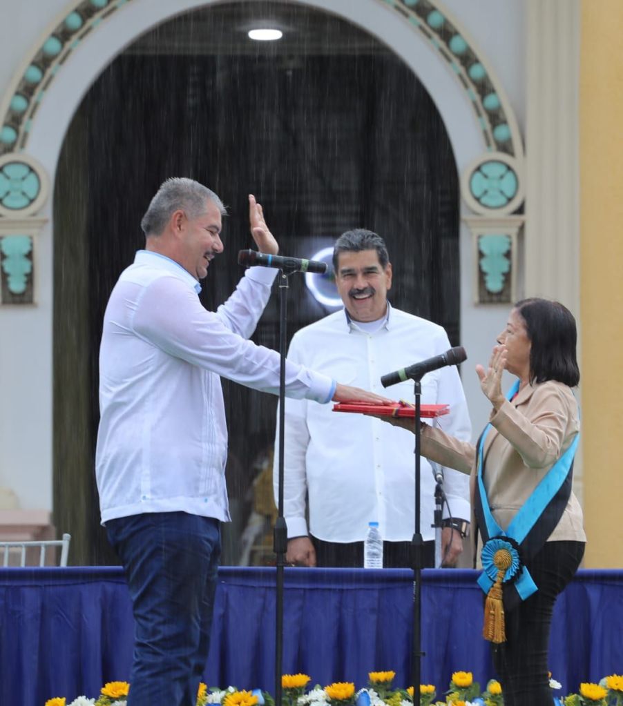 La presidenta del Consejo Legislativo del estado Zulia (CLEZ), Magdely Valbuena Muñoz, juramentó la tarde de este miércoles y bajo una intensa lluvia a Luis Caldera como nuevo gobernador del estado Zulia para el periodo 2025−2029, en una sesión solemne realizada en la plazoleta de la Basílica de Nuestra Señora de Chiquinquirá.