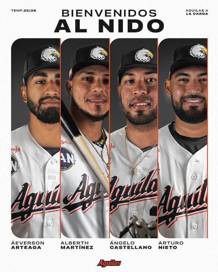 La nota de prensa enviada por el equipo de comunicaciones, de las Águilas del Zulia, indica que: Con la intención de sumar mayor profundidad al roster de cara a la temporada 2025-2026 de la Liga Venezolana de Béisbol Profesional, Águilas del Zulia sumó siete nuevos peloteros a su nómina luego de un cambio múltiple con Navegantes del Magallanes.