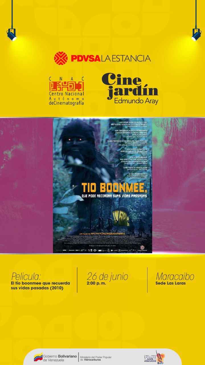 Continúan las funciones de buen cine este jueves 26 de junio, a las 2:00 de la tarde en PDVSA La Estancia Maracaibo con la maravillosa película “El tío Boonmee recuerda sus vidas pasadas”, del destacado director tailandés Apichaypong Weerasethakul.