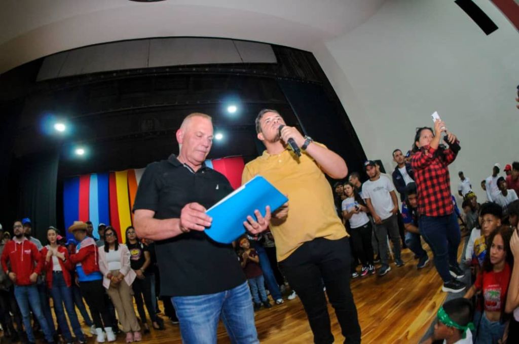 Andrés Ponnefz, Coordinador de la Juventud del Partido Socialista Unido de Venezuela en el Zulia, presente en este acto organizado para apoyar a Giancarlo Di Martino, se expresó convencido del respaldo que la juventud le brindará al candidato en las elecciones del 27 de julio, donde también se votará por los proyectos de los jóvenes. “Sin duda alguna estamos contentos hoy con esta fiesta de jóvenes que llenaron y se desbordaron en el teatro Niños Cantores.”
