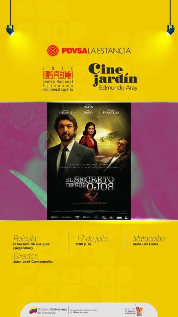 Para la función de esta tarde, proyectarán la película argentina El Secreto de tus Ojos, del director argentino Juan José Componela,
