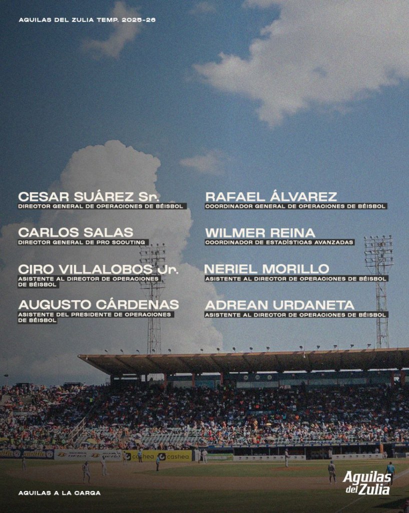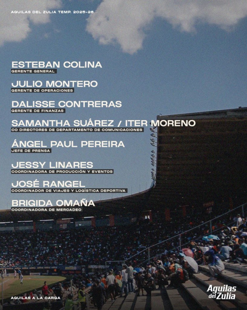 La directiva de las Aguilas del Zulia, anunció está semana, el equipo gerencial para la temporada 2025/2026 a continuación mencionamos los nombres.