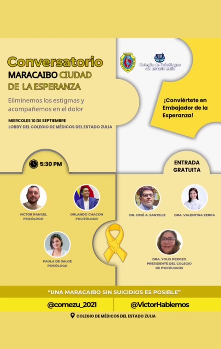 Me complace invitarlos a un conversatorio titulado *“Maracaibo ciudad de la Esperanza”* dirigido a padres y madres de familia, médicos y psicólogos, con el objetivo de fomentar la cultura de la vida y contribuir a una Maracaibo sin suicidios.