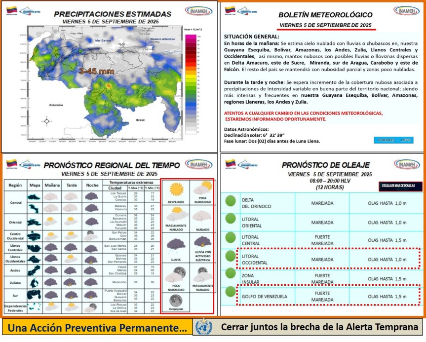 El Pronóstico del Inameh para el día de hoy, indica que en Maracaibo durante la mañana se esperan lluvias, así como para las horas de la noche.