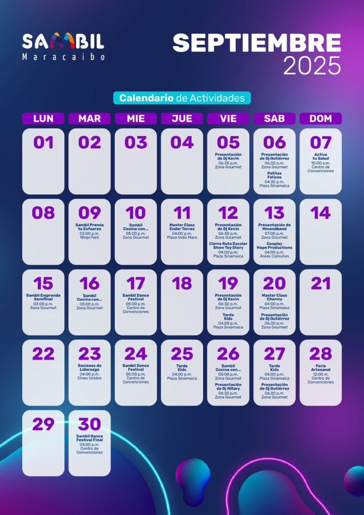 A la par de estos eventos principales, Sambil Maracaibo mantendrá su programación de actividades gratuitas, como las Tardes Kids, Sambil Cocina con… y las presentaciones de los DJs en la Zona Gourmet.