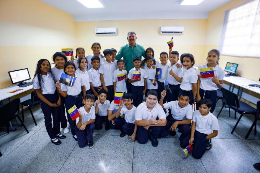 Los 550 niños y niñas de la Unidad Educativa Estadal Amanda de Jesús Bravo comenzaron su año escolar 2025-2026, con una escuela rehabilitada y dotada en sus áreas de recreación, en sus salones de clase, en su aula virtual, en la cocina y comedor que garantizan el Programa Alimentario Escolar.