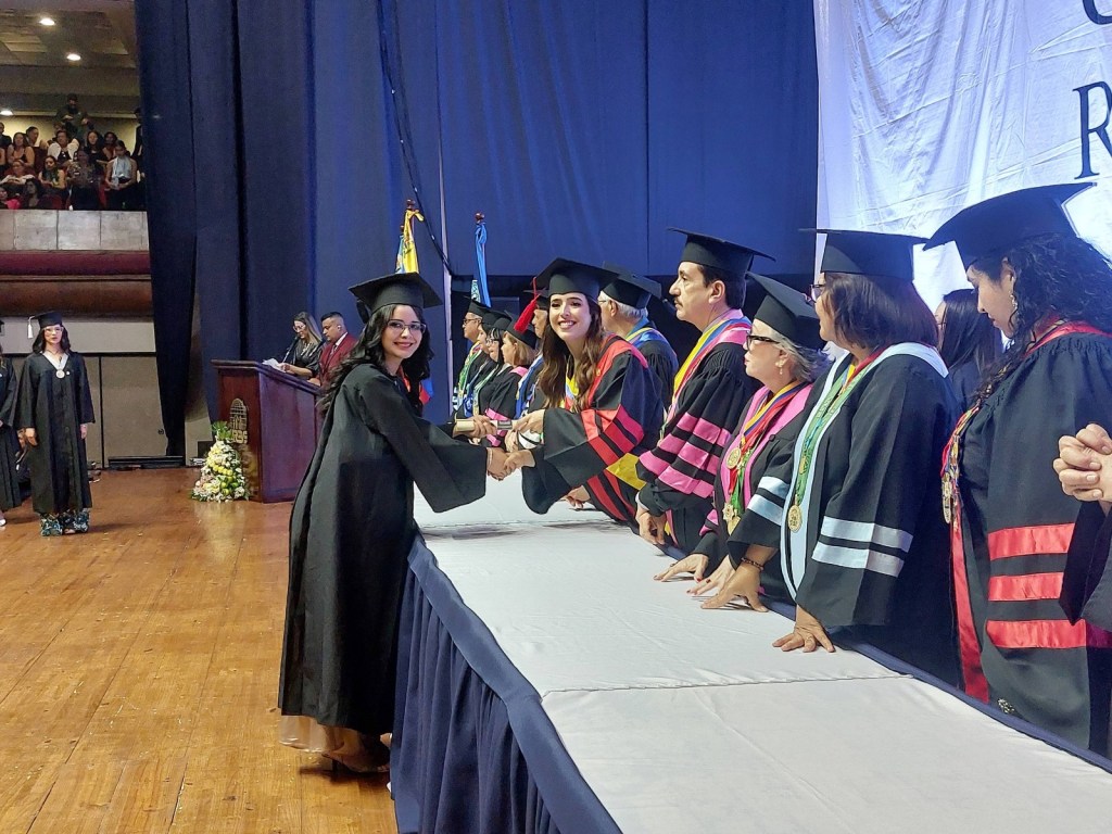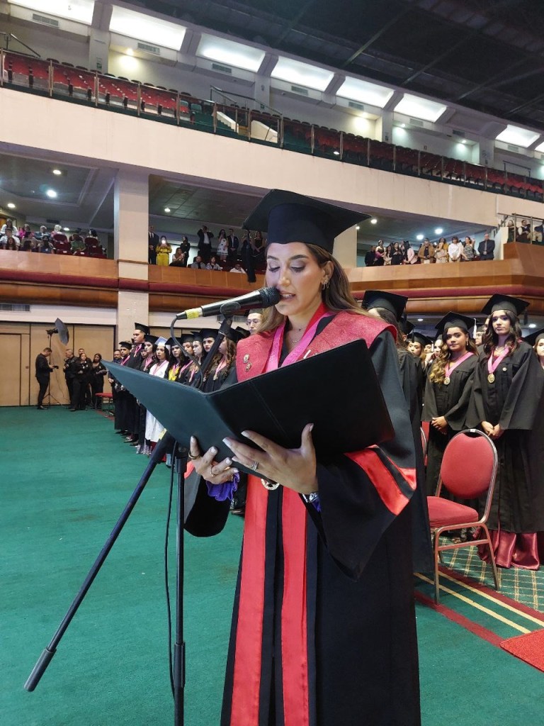 La máxima autoridad universitaria exhortó a los egresados a mantener una mentalidad positiva y perseverante en cada paso de su vida profesional: «El éxito no llega de la noche a la mañana; es el resultado de pequeños pasos diarios. El mundo necesita líderes comprometidos, agentes de cambio positivo. Desde hoy, mis queridos graduados, tienen el poder de hacerlo. Sean conscientes de las necesidades de sus comunidades y trabajen en proyectos que generen impacto social y contribuyan a construir un mundo más justo y equitativo».