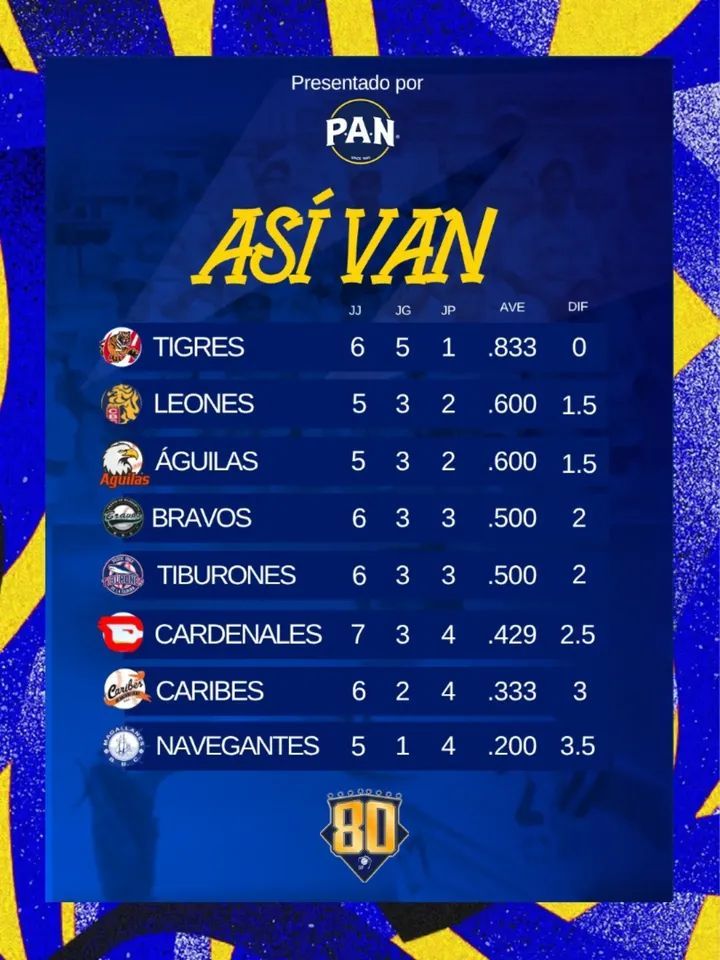 Jornada de Hoy, Posiciones y resultados del Béisbol Profesional Venezolano