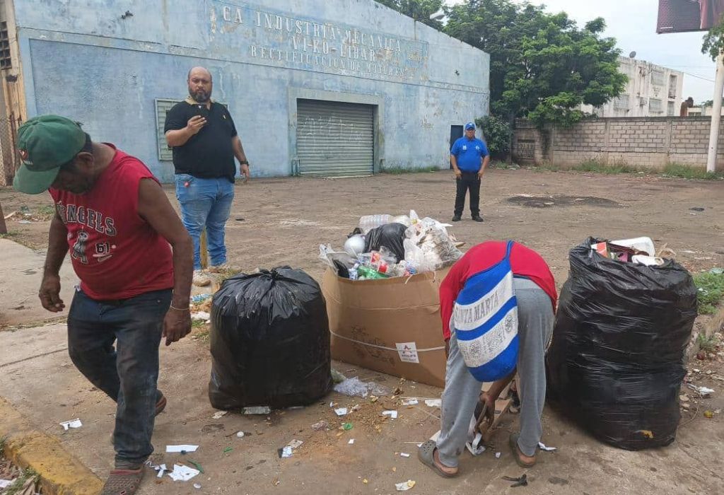 Imau, la Dirección de Seguridad Ciudadana y la Policía Municipal de Maracaibo (Polimaracaibo) en la Avenida 28 La Limpia y durante el recorrido encontraron a tres ciudadanos, que se trasladaban en carretillas, revisando los desechos que se encontraban en unas bolsas y cajas que habían sido colocadas en una esquina de esta populosa arteria vial, del oeste de Maracaibo, para ser recolectadas por el aseo urbano buscando material como plástico, cartón y metal.