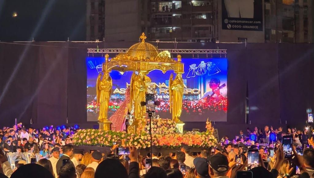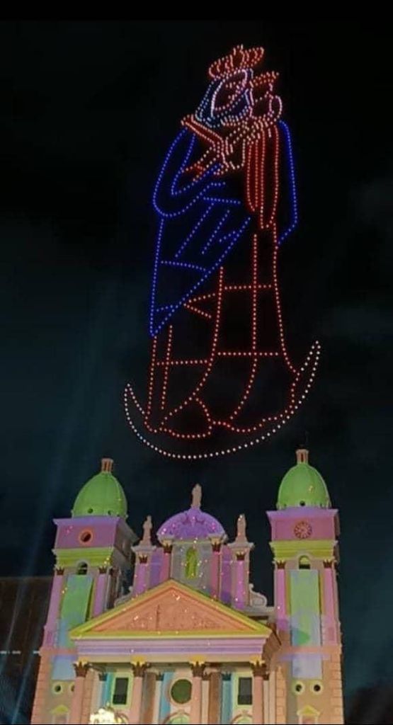 El cielo brilló con la recreación de las imágenes de los dos primeros santos venezolanos, Santa Carmen Rendiles y San José Gregorio Hernández, la virgen de Nuestra Señora de Chiquinquirá, asi como del homenajeado Astolfo Romero.