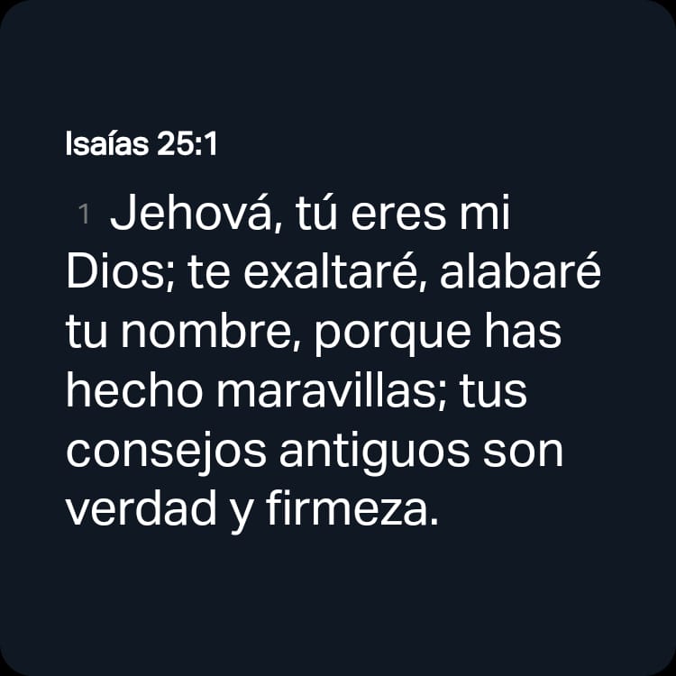 [1] Jehová, tú eres mi Dios; te exaltaré, alabaré tu nombre, porque has hecho maravillas; tus consejos antiguos son verdad y firmeza.