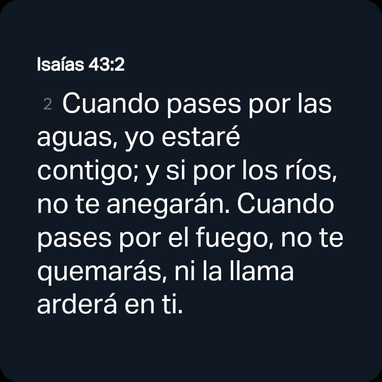 [2] Cuando pases por las aguas, yo estaré contigo; y si por los ríos, no te anegarán. Cuando pases por el fuego, no te quemarás, ni la llama arderá en ti.