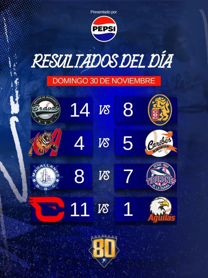 También compartimos los resultados de la jornada dominical del Béisbol Profesional Venezolano