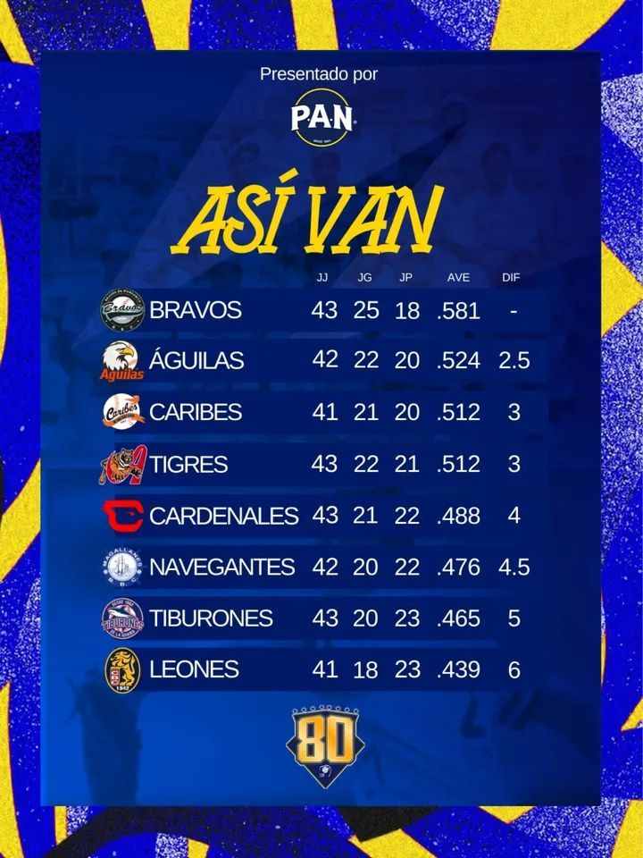Águilas Escolta a los Bravos en la Tabla de Posiciones de la LVBP Resultados y Posiciones Comparte esto: Haz clic para compartir en X (Se abre en una ventana nueva) X Haz clic para compartir en Facebook (Se abre en una ventana nueva) Facebook Me gusta Cargando... Relacionado