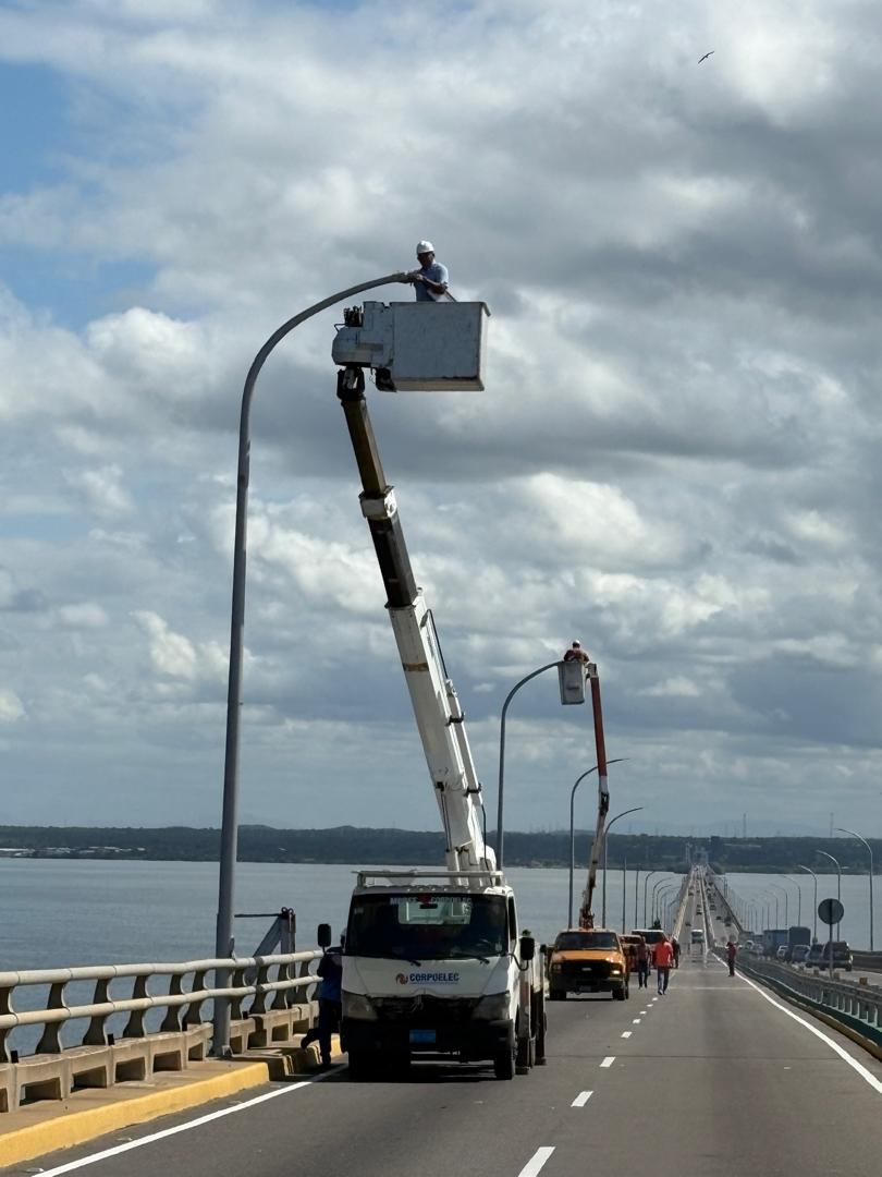 Bajo el Convenio Gobernación-Corpoelec y el acompañamiento de la Dirección del Puente General Rafael Urdaneta, se procedió a la rehabilitación de la iluminación de dos tramos del viaducto, en los que se registraron fallas y afectaron el sistema de las luminarias. Ya entraron nuevamente en servicio.